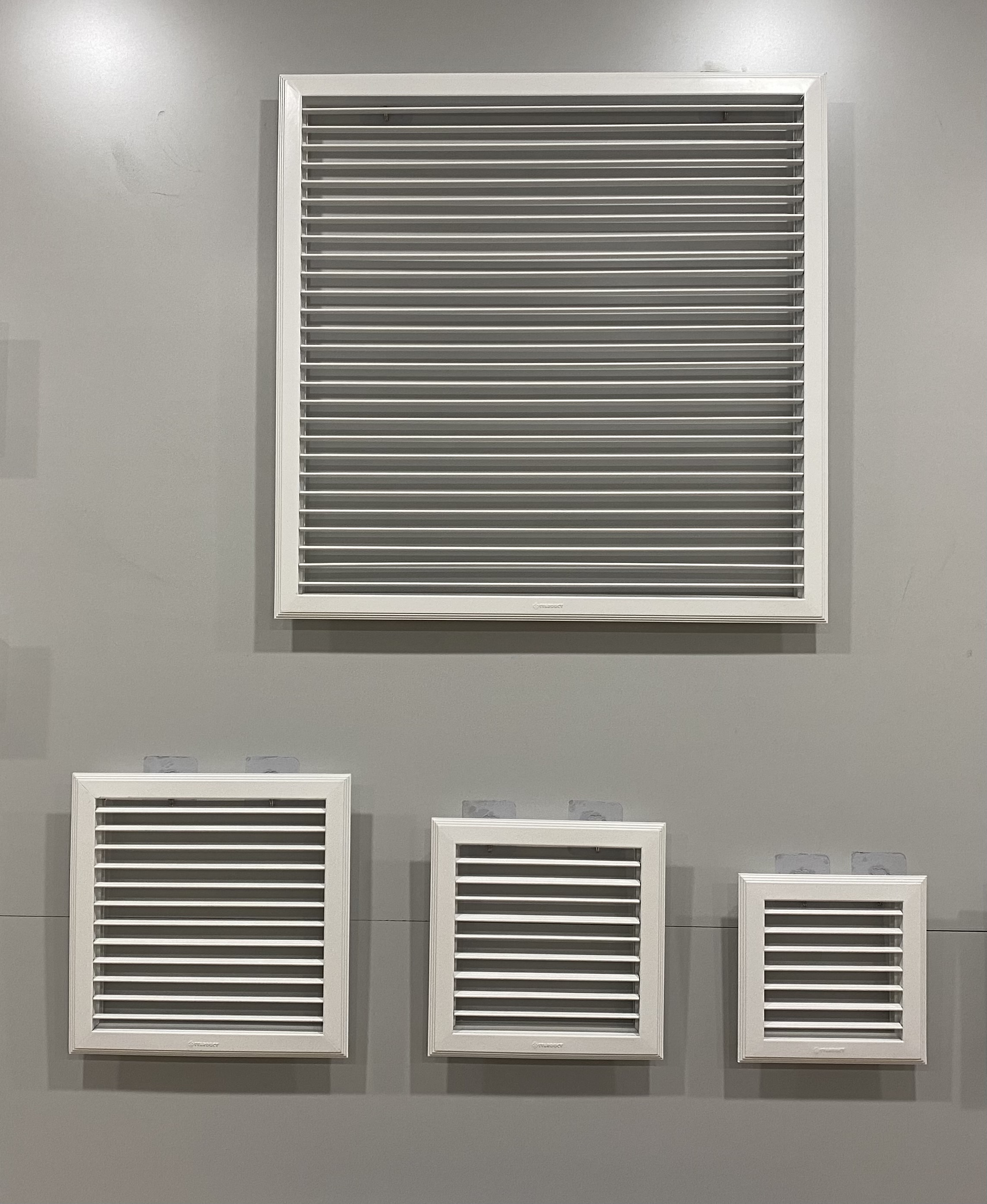 - Cửa gió vuông nan bầu dục kích thước 250x250 thường được gắn trên trần giả hoặc trực tiếp trên đường ống.