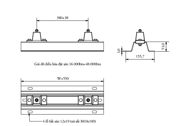 | Giá đặt sàn đơn | 550x52 | 380 ( +- 38 ) | M12 | CAO SU, BU LÔNG, ỐC VÍT |