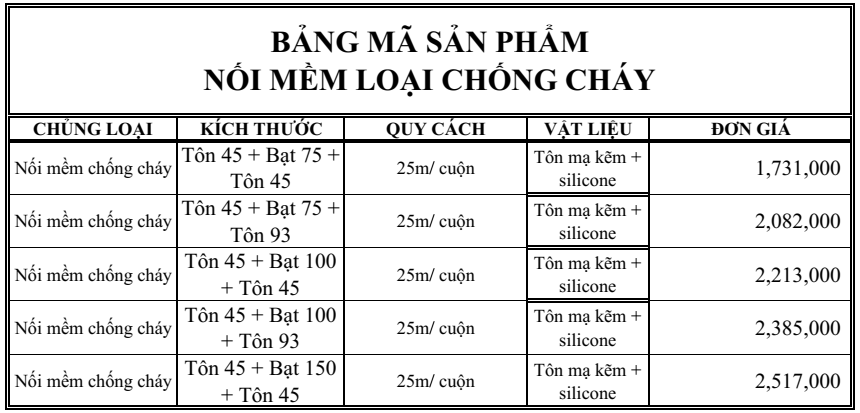 - Nối mềm loại chống cháy có khả năng tạo bích TDC chế sẵn liền khổ, tiết kiệm thời gian gia công và lắp đặt.